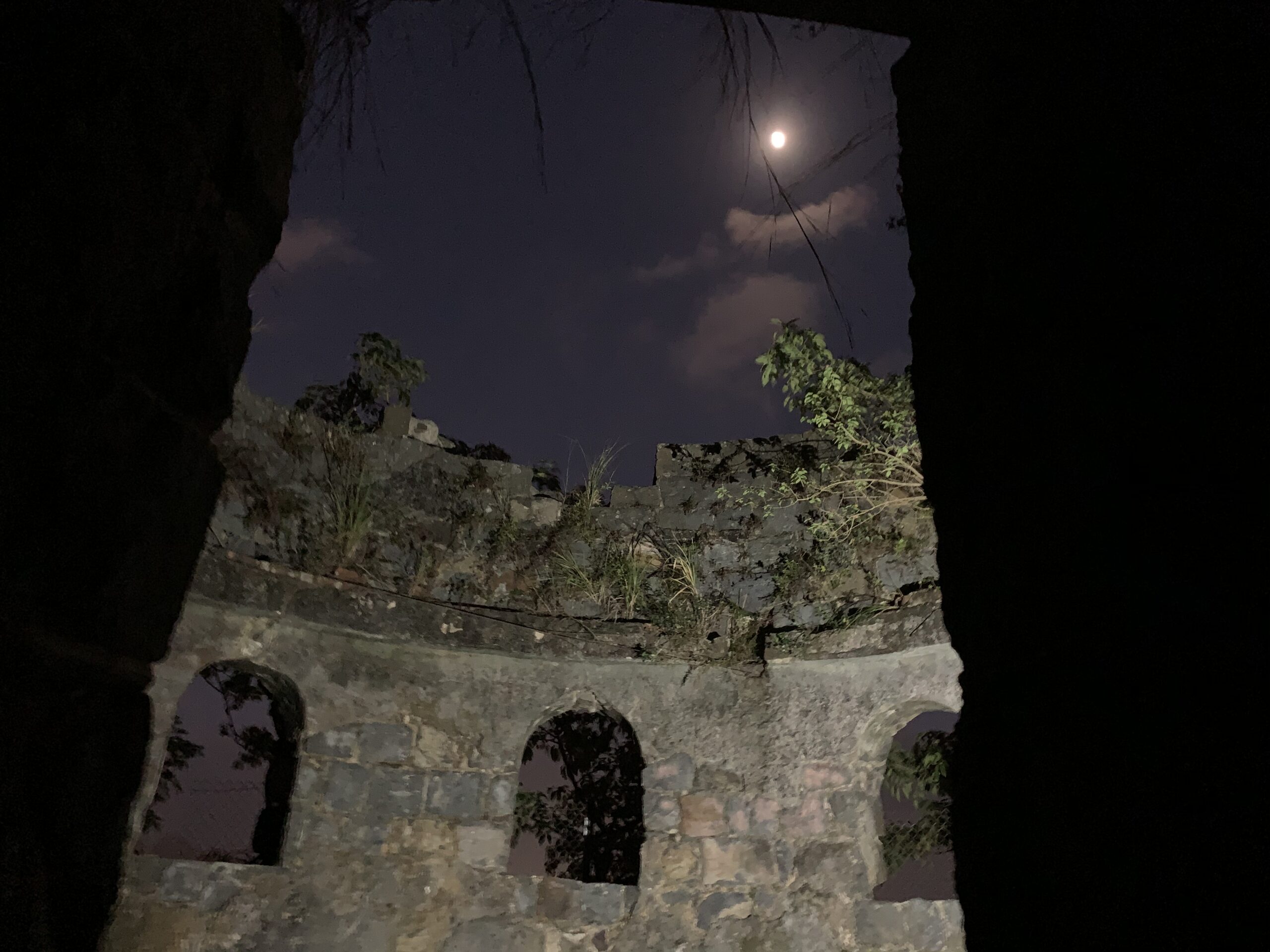 我們到時,天空剛黑,但月亮已經升起,山下整片卻是亮眼將軍澳和維多利亞港的夜景色攝入眼薕下。