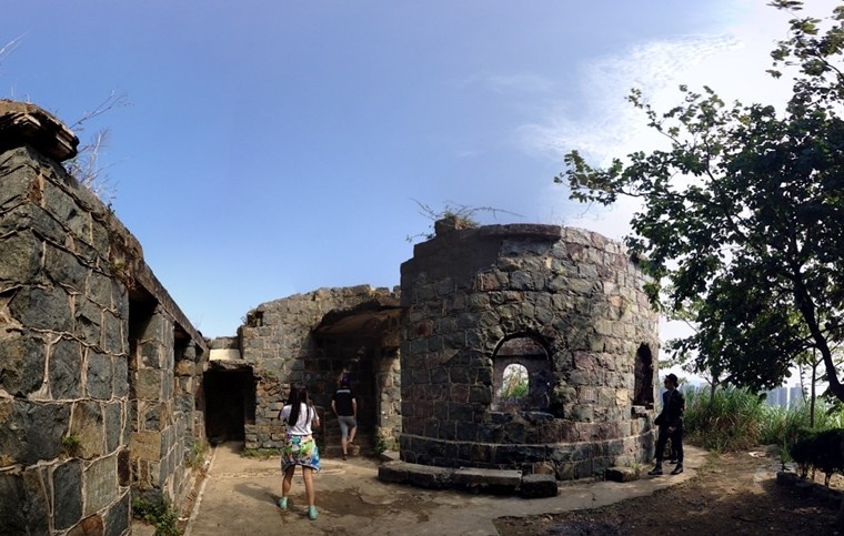 我們途中經過普賢佛院,內裡供奉黃花崗七十二烈士及多名抗日義士靈位,曾多次遭回歸特區政府逼遷,負責人劉建國更一度為此自焚,至今仍一直爭取原址重建。經過普賢佛院後便繼續上山,在一個防坡牆上有寫著「人民公社好」,爬至下至一路口位會見到一個大鐵網並於中間被開了個大洞,旁邊的燈柱上有有心人寫著「炮台堡壘」的箭咀字樣。