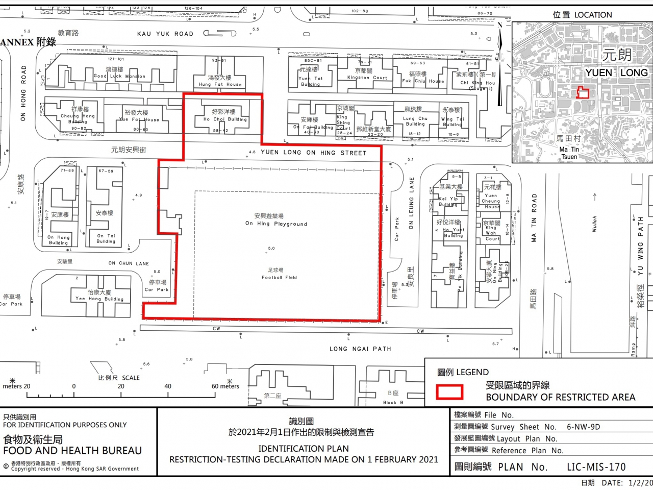 香港政府再突襲式封區,晚上七時在尖沙咀及元朗劃出受限區域。政府晚上8時起,將紅磡馬頭圍道隆基大樓列為「受限區域」,目標是明日上午約7時完成行動。