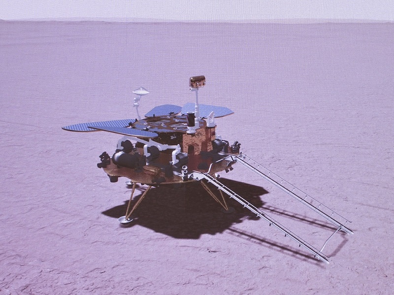 中國首個火星探測器天問一號,成功著陸火星烏托邦平原南部的預選著陸區。(新華社)