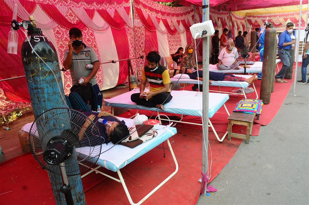 染疫民眾在一處臨時搭建站接受供氧。(安納杜魯新聞社)-1.jpg)