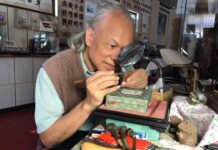 黃金雕刻時他困難的地方是,挑起的殘渣比較不容易清除,屬於比較有黏性的金屬,是一個失敗的原因,還有那麼小的黃金素材要如何固定好他,也是很困難的一件事,那麼渺小的黃金材料雕刻的時候,閉氣雕刻也很重要,一個顫抖黃金素材就不見了,又必須重新再來,也是最傷腦筋的部分,雕刻好的黃金屋,必須透過放大鏡才能夠看得清楚!三合院有主廳以及左右兩邊,還有一個院子,還有一圈圍牆及大門,圍牆的大門上還刻了兩個字,春、福!非常的生動感人,很有思古幽情的氛圍感覺,雕刻好的”黃金屋”三合院古厝放在戒指裏面,顯得很渺小,這是一件曠世經典巨作,也是黃金雕刻工法最困難的一件作品,整體的感覺很美觀、很前衛,是一件難得的作品。