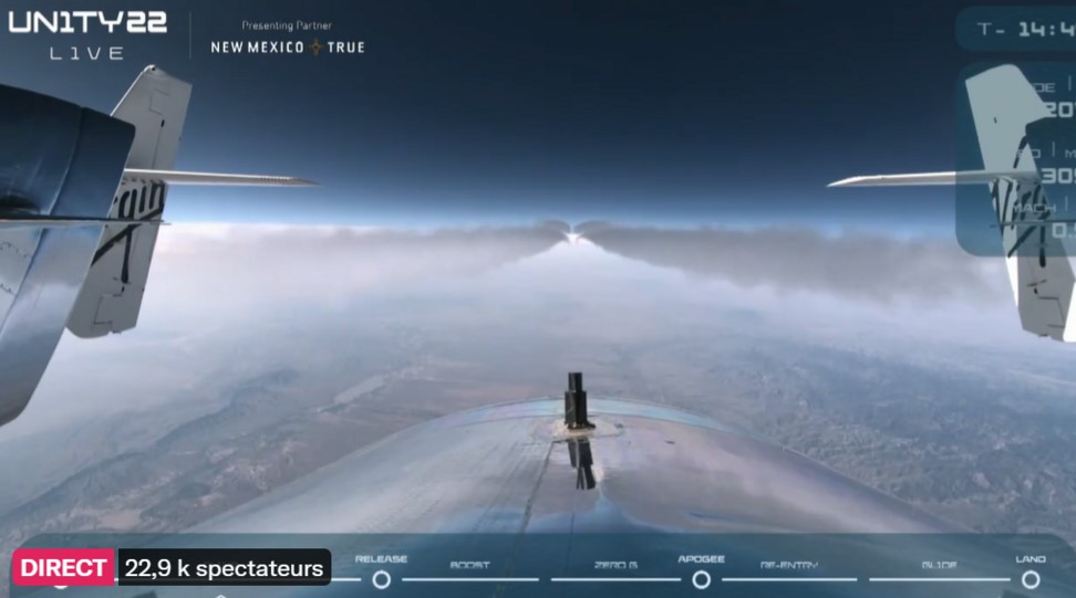 在大约15公里的高度,这个与私人飞机差不多大小的航天器将被释放并点燃其引擎,以超音速上升到超过80公里的高度–这是美国为太空前沿设定的界限。