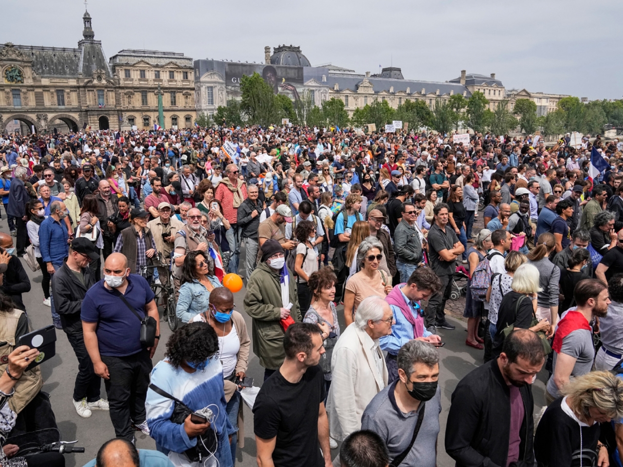 法國首都巴黎再有人上街,幾百人抗議當局強制醫護人員和院舍員工接種疫苗,以及推行健康證明書制度。昨日起遊客進入博物館、戲院和泳池,要出示已完成注射疫苗或陰性檢測證明,有遊客因為未能提供證明,被拒進入羅浮宮,對此感到憤怒和掃興。另外,下月起去餐廳和酒吧都要提供健康證明。