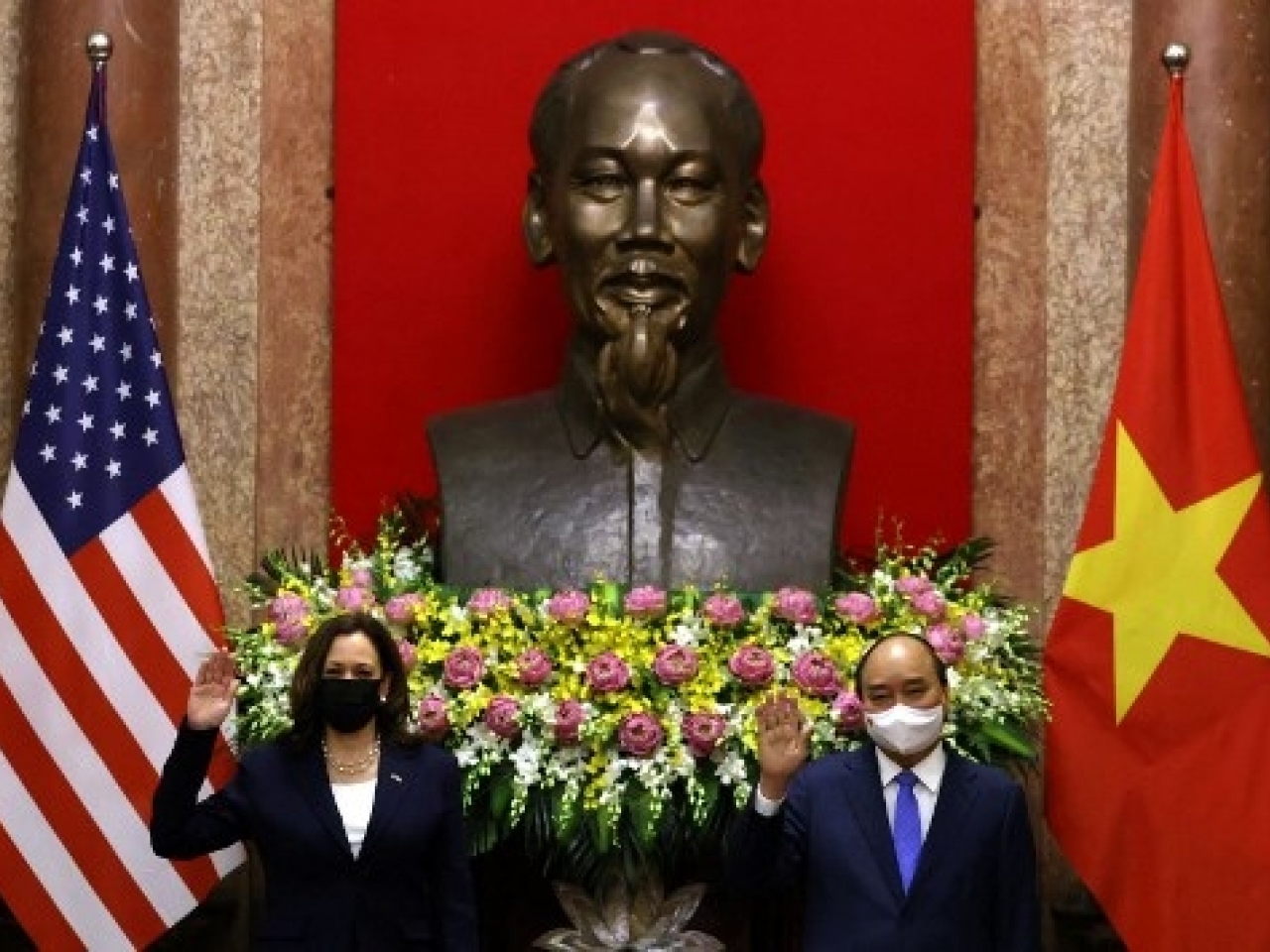 (中华新闻通讯社讯)​正在越南河内访问的美国副总统贺锦丽,会见越南总统阮春福。贺锦丽发言时,再度批评北京政府欺负东南亚邻国,强调有必要就北京在南海的军事扩张,向北京加强施压,迫使北京遵守《联合国海洋法公约》,并挑战中方在南海的过度主张。