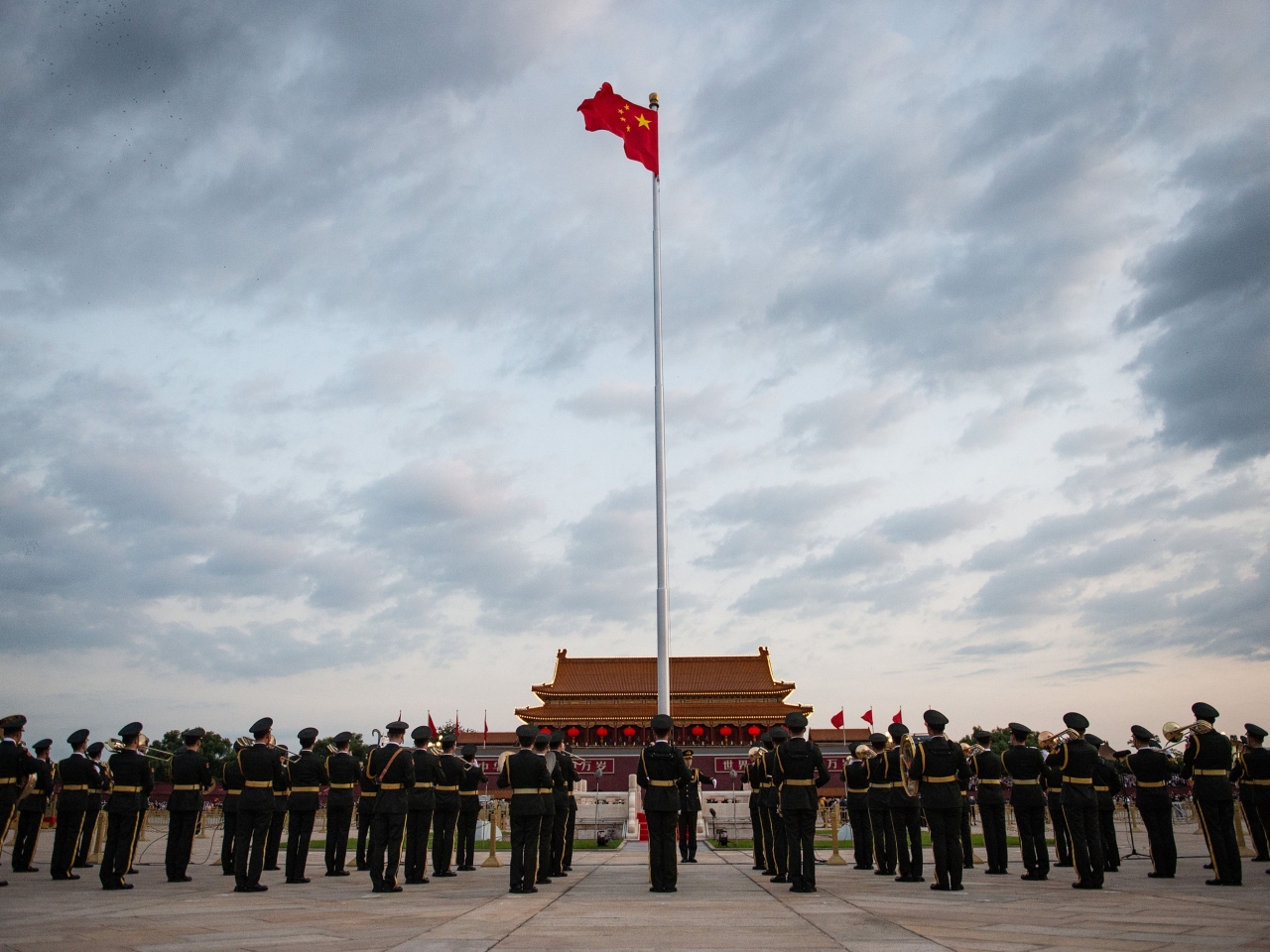 今日是中華人民共和國成立72周年。北京天安門廣場,舉行隆重的升國旗儀式。民眾聚集在天安門廣場,觀看國旗升起。