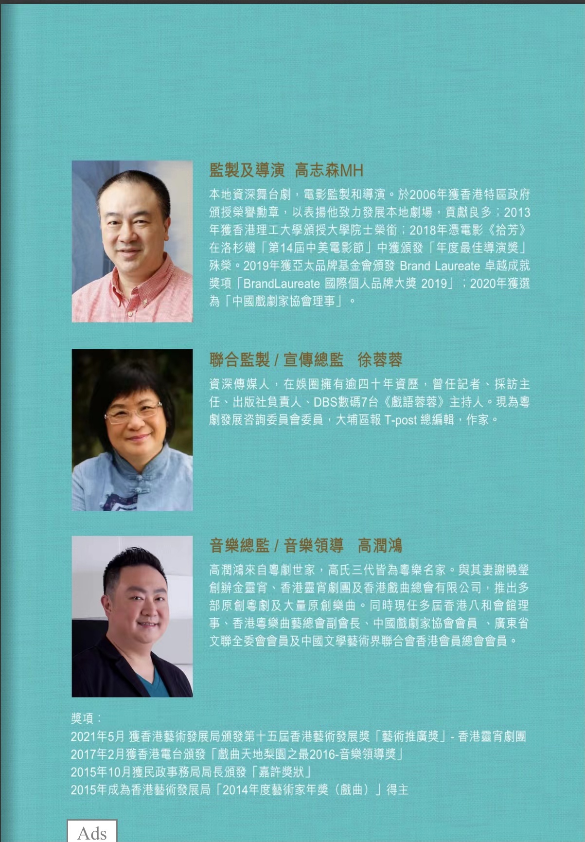 (中華新聞通訊社/中華時報訊)因為被京劇(程硯秋主演) 《鎖麟囊》深深吸引,導演高志森決定首次製作粵劇《鎖麟囊》,邀請謝曉瑩編劇,高潤鴻音樂設計,謝曉瑩、李沛妍、千珊及關凱珊主演此劇於2021年7月10及11日於香港西九戲曲中心大劇院首演,演後大獲好評。不少人均希望此劇重演。得到鼓勵及贊助,加上香港演藝學院有空檔期,高志森毅然決定於2021年11月13日14日假香港演藝學院重演三場。