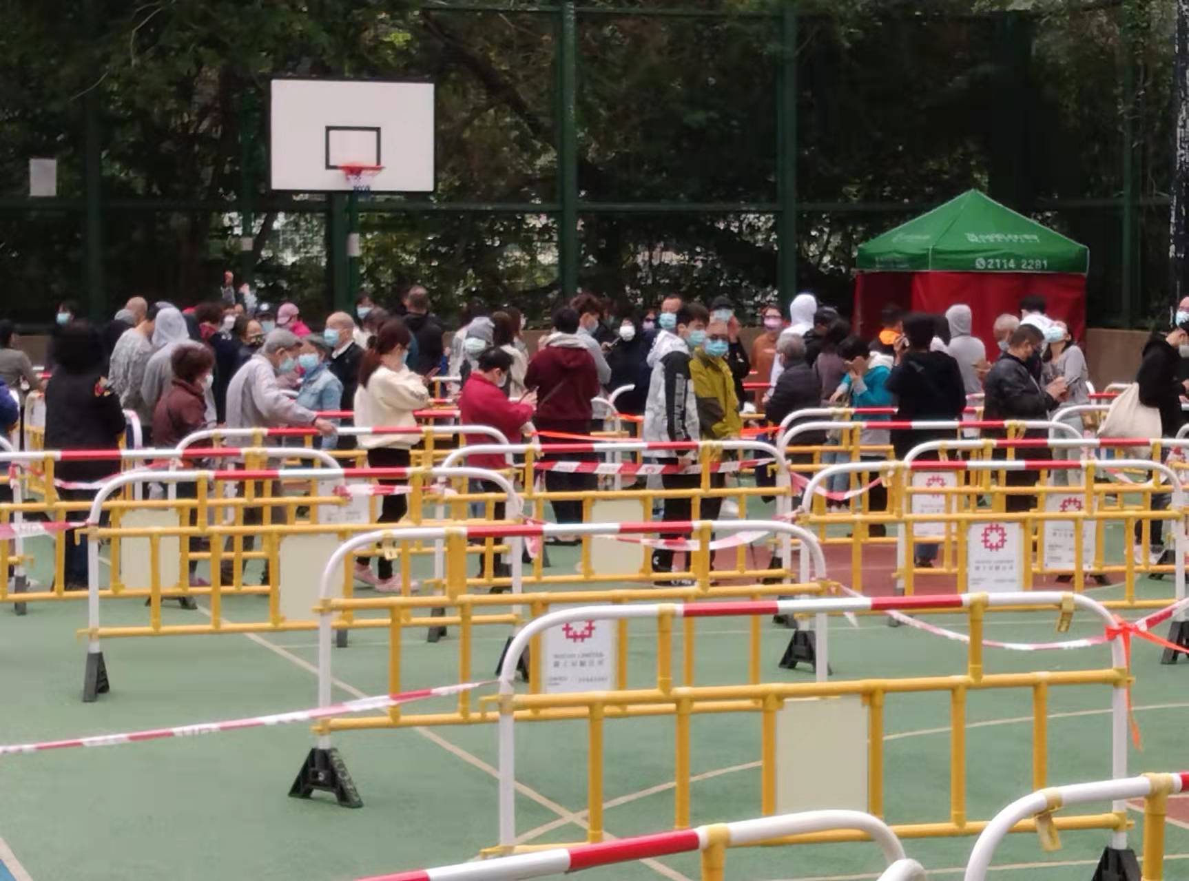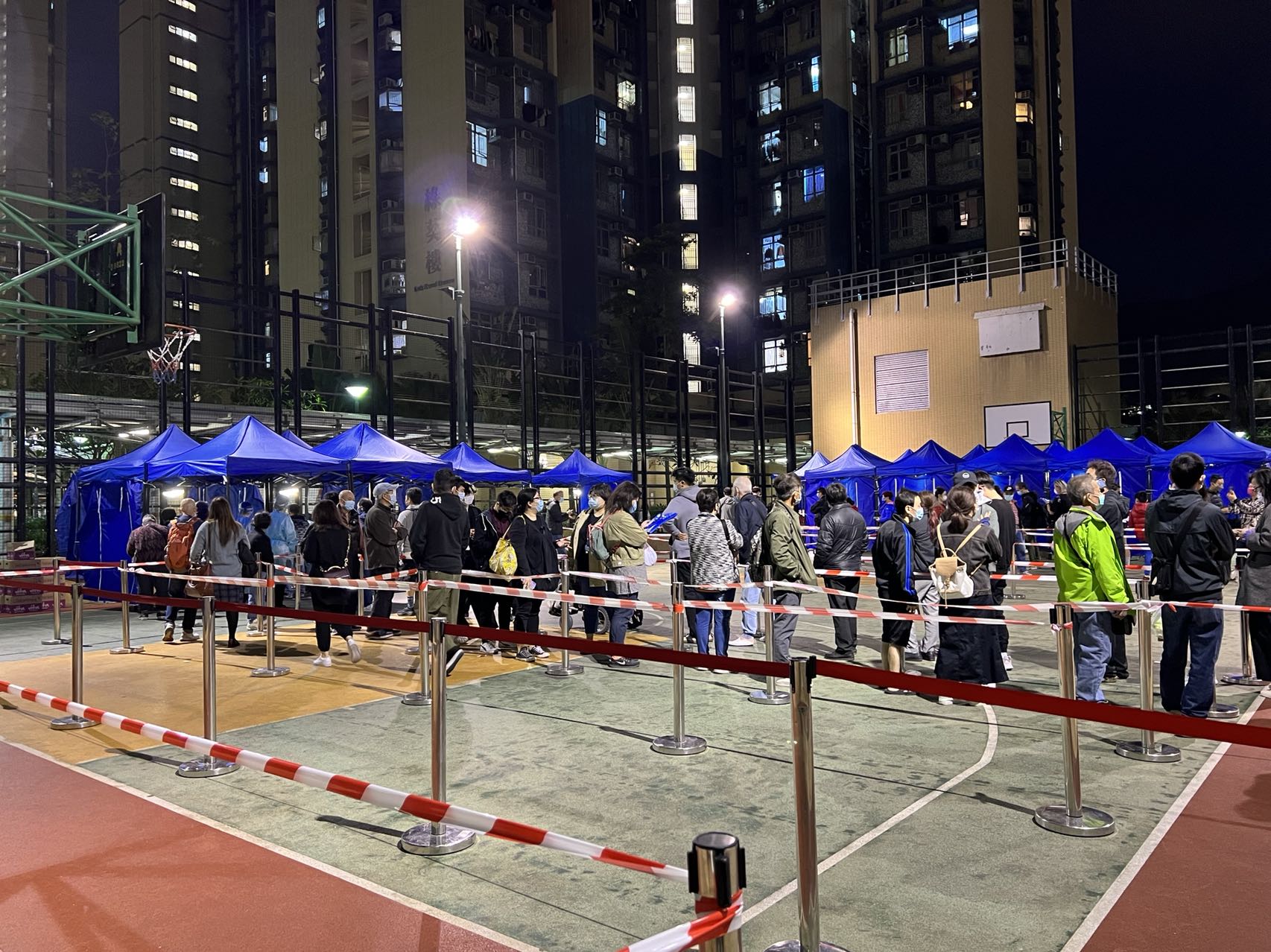 政府凌晨宣布,將映葵樓列為「受限區域」,居民須在處所等候,直至所有受檢人士完成檢測,檢測結果大致確定,才可離開處所,目標是晚上約7時完成行動。