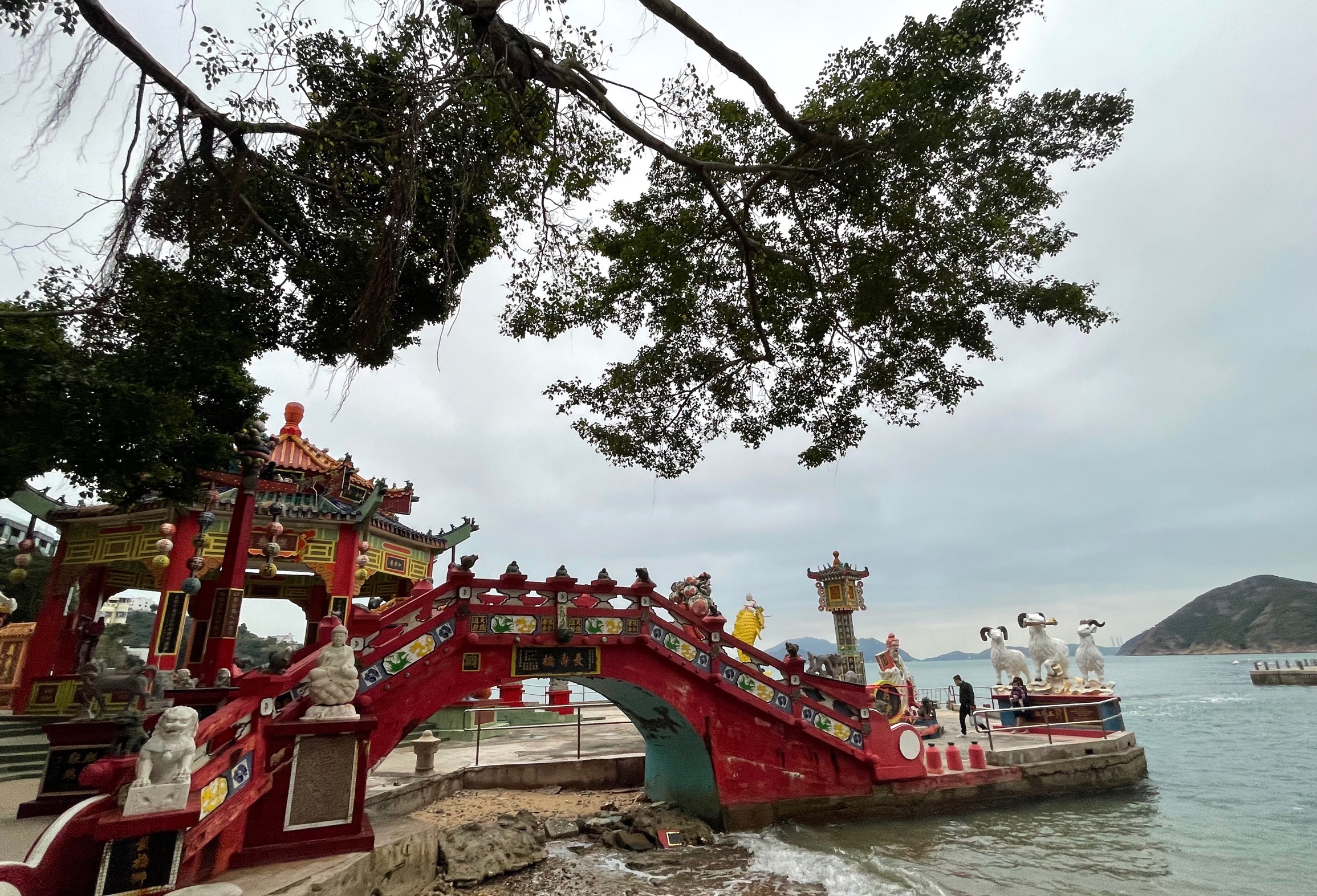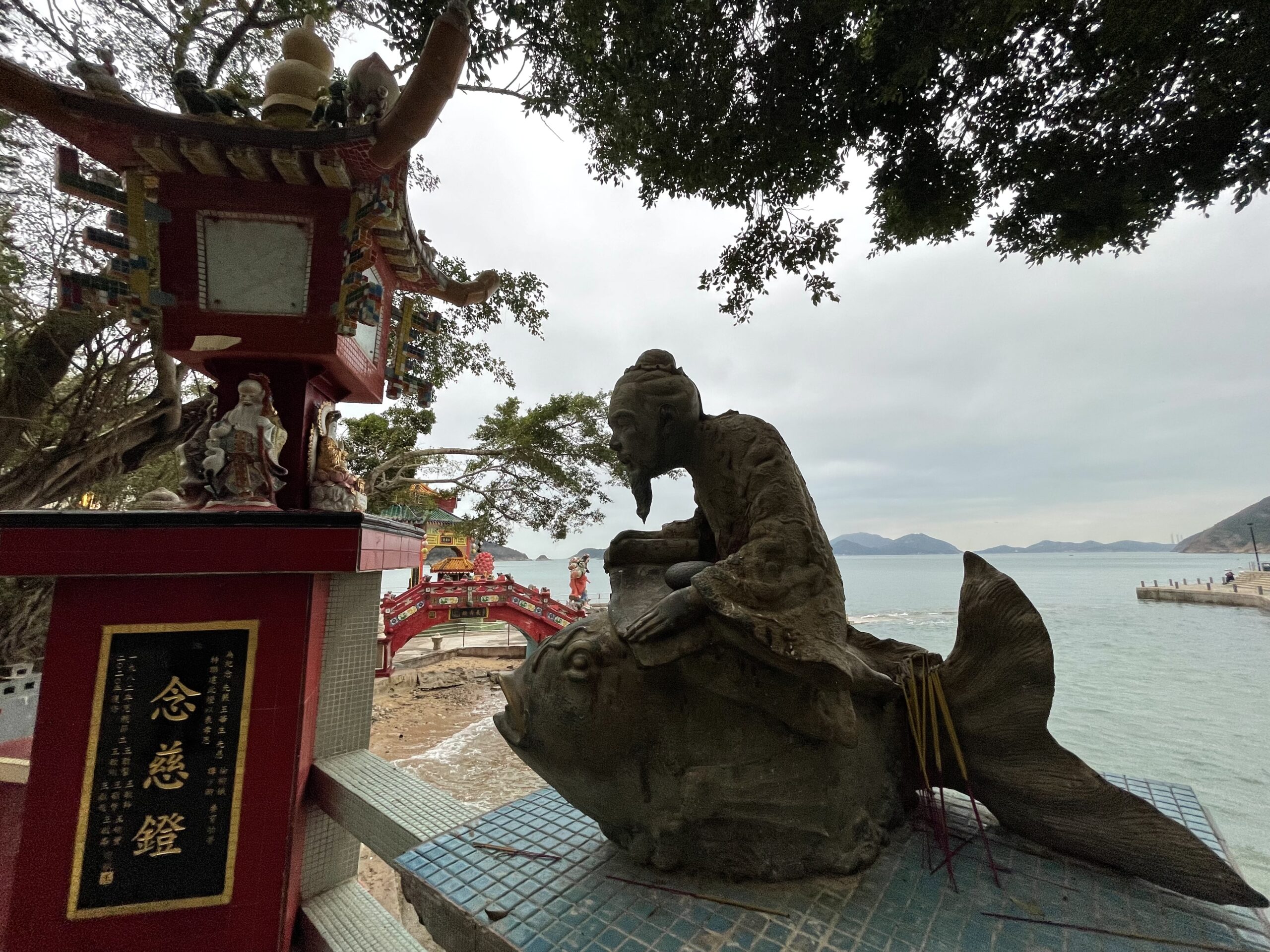 我提议,大家到海滩东面的香港拯溺总会去看看吧!其实这是一座传统中国建筑,海滩上的镇海楼公园内,则矗立着十多米高的天后娘娘、观音菩萨、四面佛及长寿桥等等,林林总总的各个菩萨的雕像都是有钱人捐赠矗立,写明捐赠人的落款。朋友说,过了人造长寿桥一次就长寿一天,其实“人生在世不称意,明朝散发弄扁舟。”