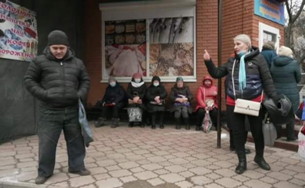 最近幾天,幾乎沒有證據表明烏克蘭對頓涅茨克進行攻擊。 這名婦女聲稱人民歡迎入侵,立即遭到一名男子的質疑,他大喊沒有人在轟炸頓涅茨克,而普京在轟炸烏克蘭。