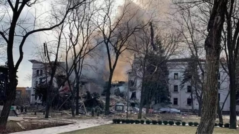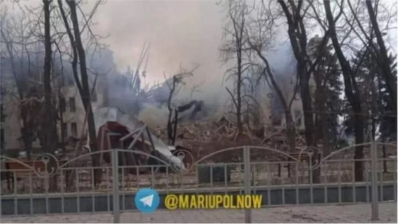 烏克蘭外交部長說,俄軍向南部港口城市馬里烏波爾的一個劇院投擲了一枚重磅炸彈,當時有數百名平民正在那裡躲避戰火。俄軍否認攻擊了這座劇院大樓。