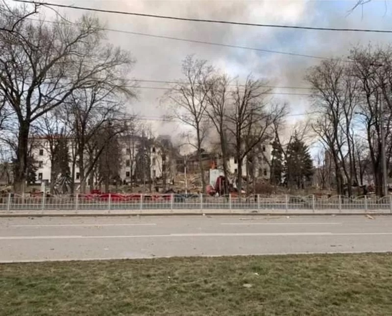 馬里烏波爾市議會公佈的一張照片顯示俄軍空襲使這座三層樓的大劇院整個一面坍塌。數百人當時正在劇院的地下室裡避難。俄軍對這個具有戰略地位的亞速海港城市圍困了三個星期。