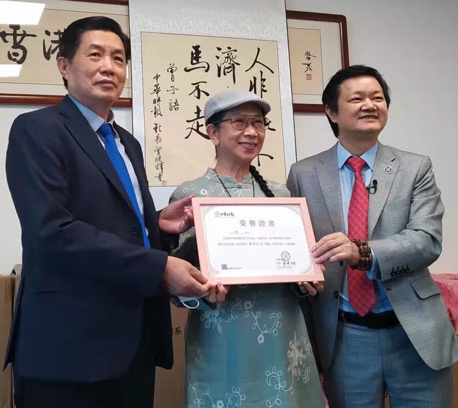 3 中華時報社長曾曉輝贈他題寫的書法給「旅港老兵聯誼總會」儀式。