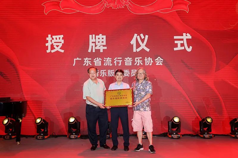 嘉宾致辞后,会上为广东省流行音乐协会、殿堂文化、比亚迪声音设计工作室、广州市流行音乐协会、太阳之子进行揭牌仪式,并由多位领导为广东省流行音乐协会的音乐版权委员会、语言艺术委员会、音乐剧委员会、流行音乐培训委员会等委员会进行授牌仪式。