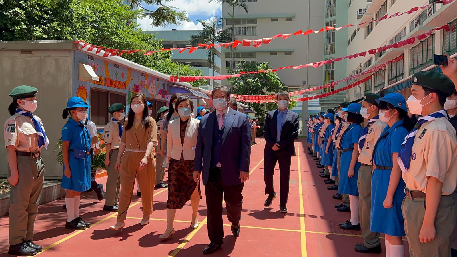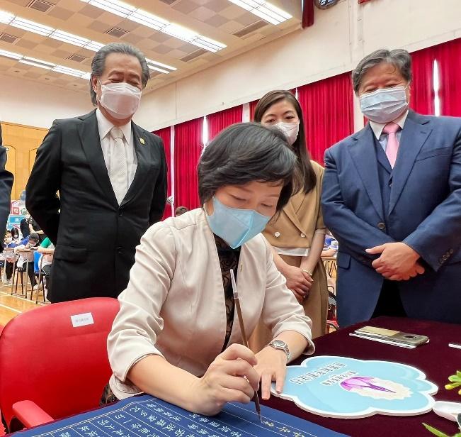 教育局局長蔡若蓮致辭時表示,很高興出席由覺行念慈基金會主辦的「慶祝香港回歸25 周年暨世界和平書法日」,有機會與大家一起見證師生齊心協力,用我國書法,創造世界紀錄的歷史時刻。這項活動可以讓同學感受書法藝術之美,陶冶性情,洗滌心靈,增強對中華文化的了解與欣賞,實在是不可多得的學習經驗。