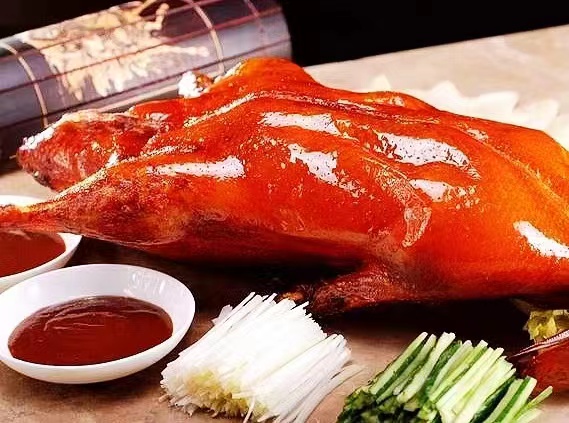 在蒽、黃瓜絲、甜麵醬和糖這四小碟配料中選擇你所喜歡的,用薄薄的面皮卷裹上,鴨皮香脆,鴨肉香酥與面皮、作料的香甜完美融合,美味佳餚的滿足感油然而升。店家還會送上一盤面餅,配烤鴨則有另外的風味。隨鴨奉送的每人一碗鴨湯,鮮美、清淡,特別爽口,可解油膩。