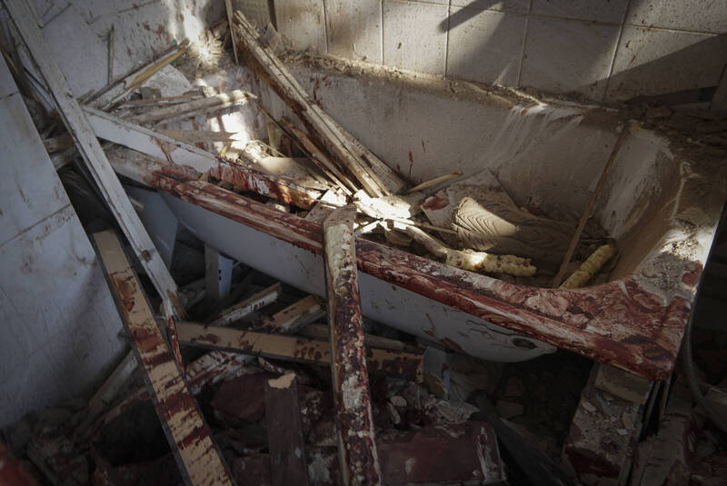 哈爾科夫建築遭俄羅斯飛彈攻擊後,顯得殘破不堪。(法新社)