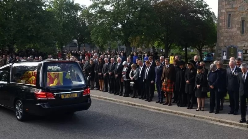 周日(9月11日)上午,女王灵柩离开了巴尔莫勒尔城堡,沿途经过她生前熟悉的多个小村庄后抵达苏格兰首府爱丁堡。灵柩在爱丁堡停留24小时供民众瞻仰后,将空运回伦敦。英国为女王举行的隆重国葬将在9月19日举行。