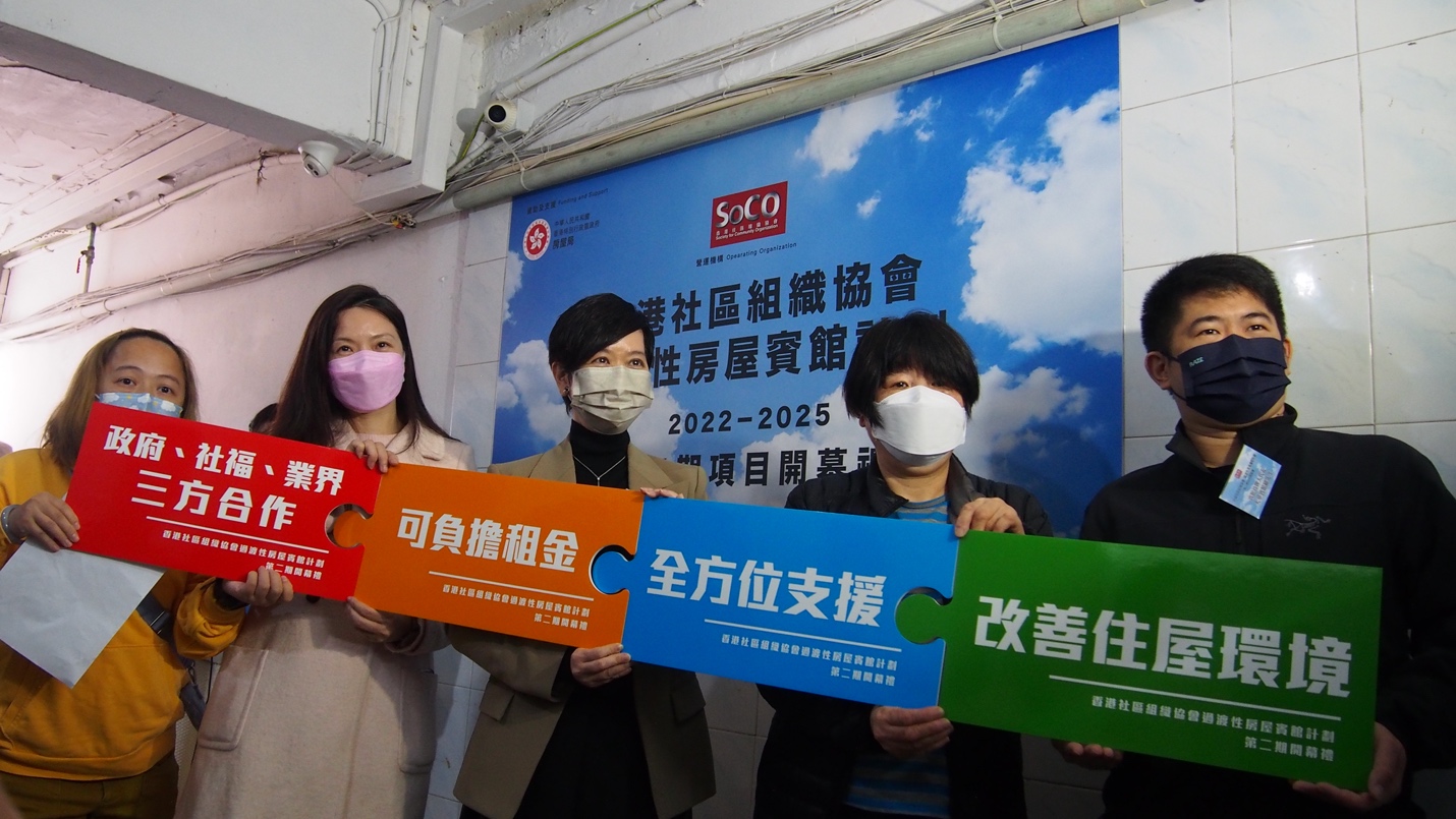 中華新聞通訊社/中華時報香港1月11日訊)香港社區組織協會舉行「過渡性房屋賓館計劃第二期開幕禮」,倡議推行社會房屋,為苦等公屋的基層劏房或露宿者紓緩住屋困難,房屋局局長何永賢女士JP出席主禮,及探訪受惠人士及與賓館持牌人見面。