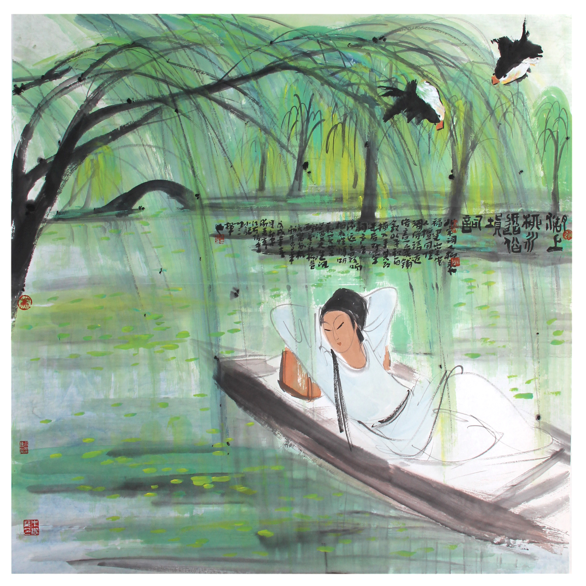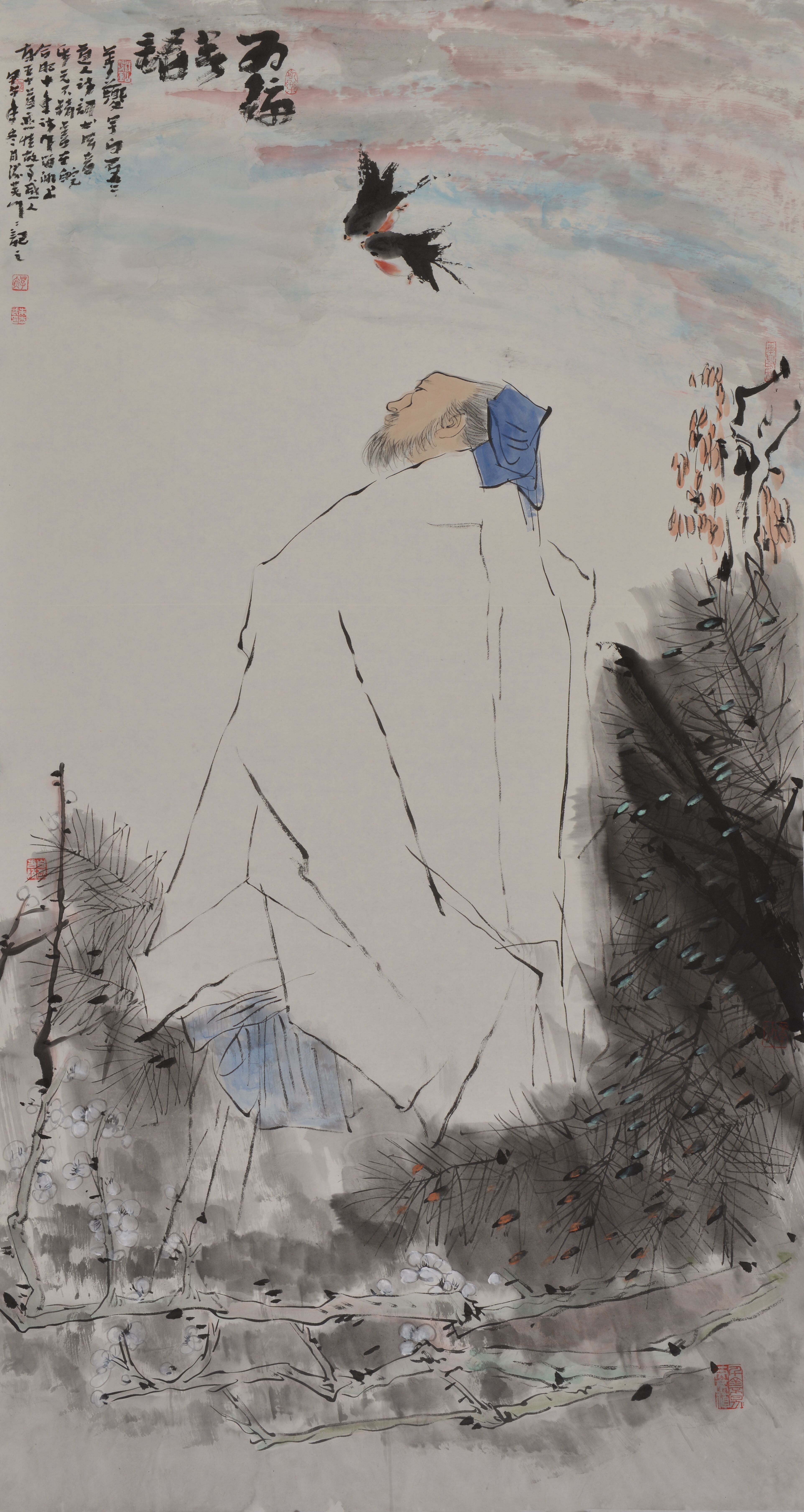 展出的題材多樣的近百幅作品,包括人物、山水、花鳥等,既畫古人詩意,又畫今人心跡,既有鴻篇巨制,又有小品鬥方,內容豐富多彩,意境深邃悠遠,都是滋蕪數十年來尤其是近3年探索藝境的代表性精品,如《楚辭意》《新安山水甲天下》《鄉情牧趣》《寫在希望的田野上》等。 這些作品體現著滋蕪對傳統文化的轉譯,傾訴著滋蕪的鄉心,凝聚著滋蕪對中西繪畫形式、技巧的融會貫通,傳達著滋蕪對勞動人民的崇高敬意和對新時代的歌頌、祝福。 觀眾在畫展中可一窺滋蕪的畫中詩境、藝境、心境、意境,感悟中國畫的筆墨意趣。