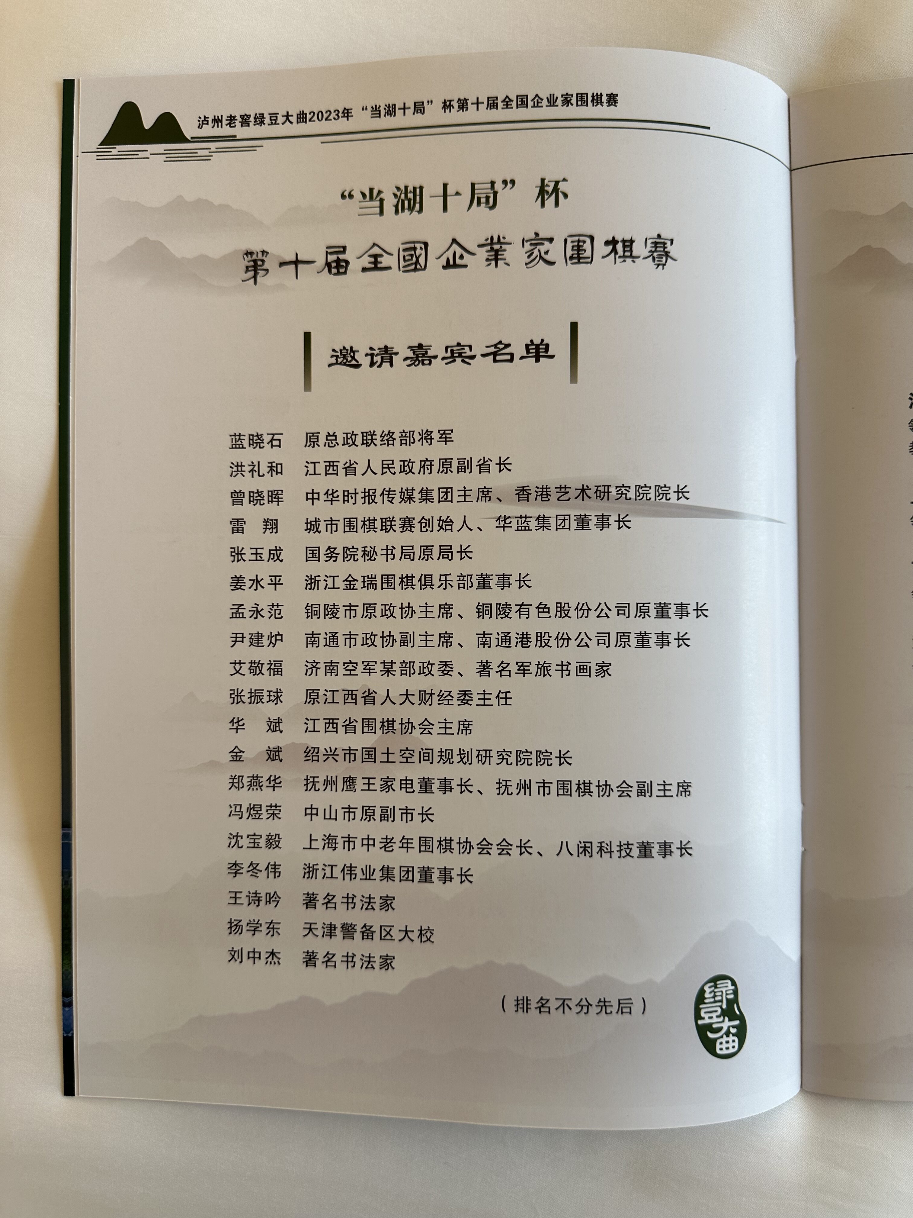 讓我們期待中國「當湖十局」杯第十屆全國企業家團棋賽的精彩對局,期待圍棋盛會的圓滿成功,讓這場盛會的榮光永遠流傳。