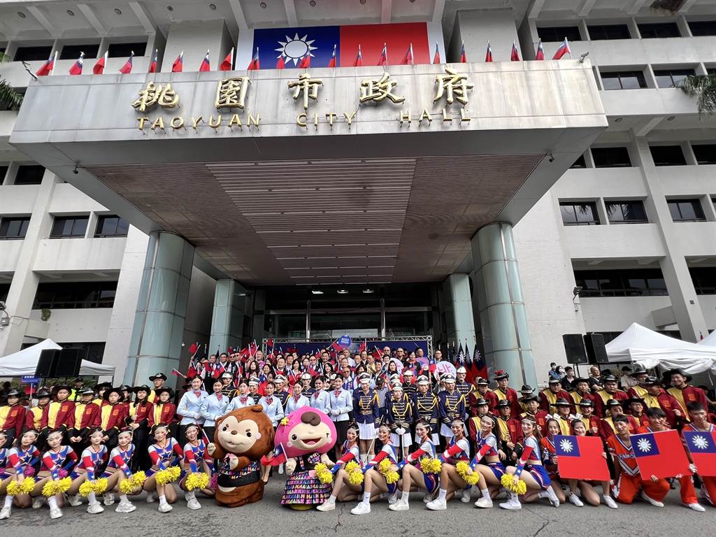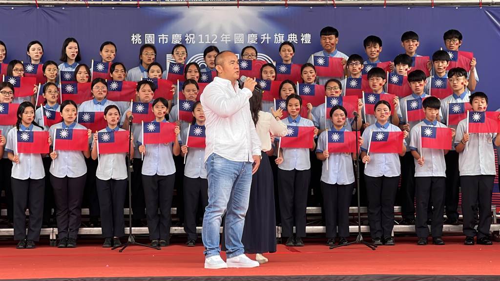 (中華新聞通訊社/中華時報10月10日台北訊)桃園市政府10日擴大規模舉辦升旗典禮,湧入逾3000人擠滿府前廣場,市長張善政特別邀請以青天白日滿地紅裝扮出席的小女孩一起上台致詞,他說國旗見證中華民國蓽路藍縷開國,到如今站穩腳步、受到國際尊重的辛苦過程,雖然不同立場對國家發展有不同意見,但國旗應是所有人核心價值,國家有難就該所有人團結在國旗底下為中華民國打拚,國家絕對會繼續進步、希望無窮,過程也發生7旬婦因太興奮昏倒送醫,所幸並無大礙。