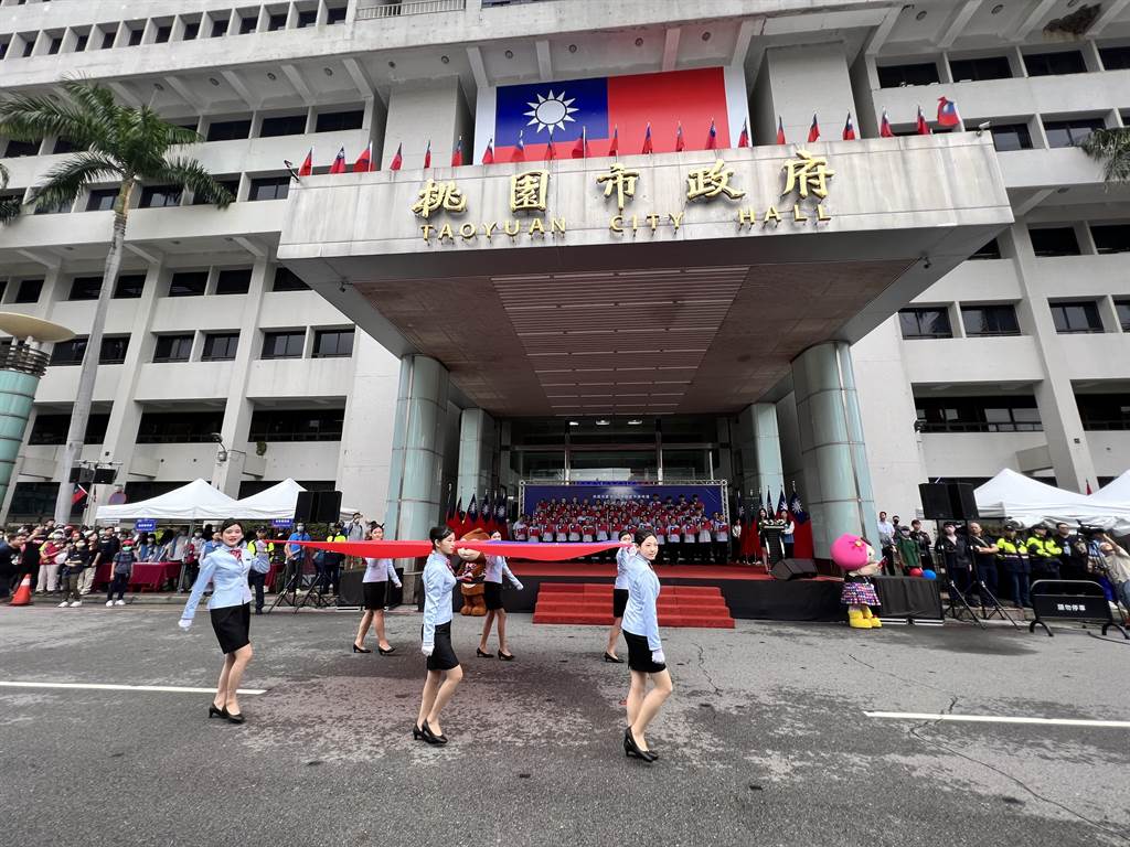 張善政說,今年桃園13個行政區懸掛的國旗數量較往年增加1倍,交通幹道、辦公處所都掛滿國旗,全市旗海飄揚,其中最大的一幅國旗就懸掛在市府大門上方,同時市府也規畫豐富的系列活動,像是桃園眷村文化節、國慶嘉年華市集、國慶升旗線上互動遊戲等,打造不同往年的國慶氛圍,讓國慶的光榮感遍布桃園每一個角落。