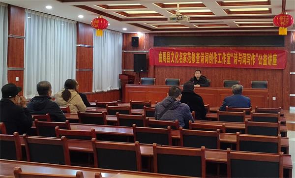 中华时报/中华新闻通讯社河北讯(记者 张彪) 为弘扬传承中华优秀诗词文化,2023年12月16月,河北省曲周县文化名家范修奎诗词创作工作室在县文艺家之家会议室举办了“诗与词写作”公益讲座,县作家协会代表、文学爱好者参加培训。