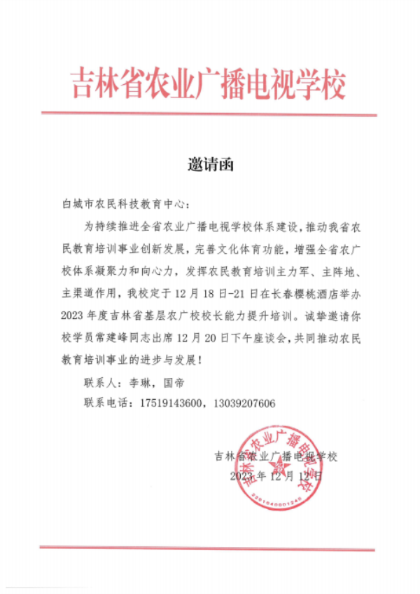 采访中,传来吉林省农业广播电视学校发来邀请函消息,常建峰将受邀参加2023年度吉林省农广校校长能力提升培训班座谈会。会上,他将带去自己的产业发展想法和对农民教育培训的相关建议,与同行们共同推进农民教育培训事业的进步与发展。