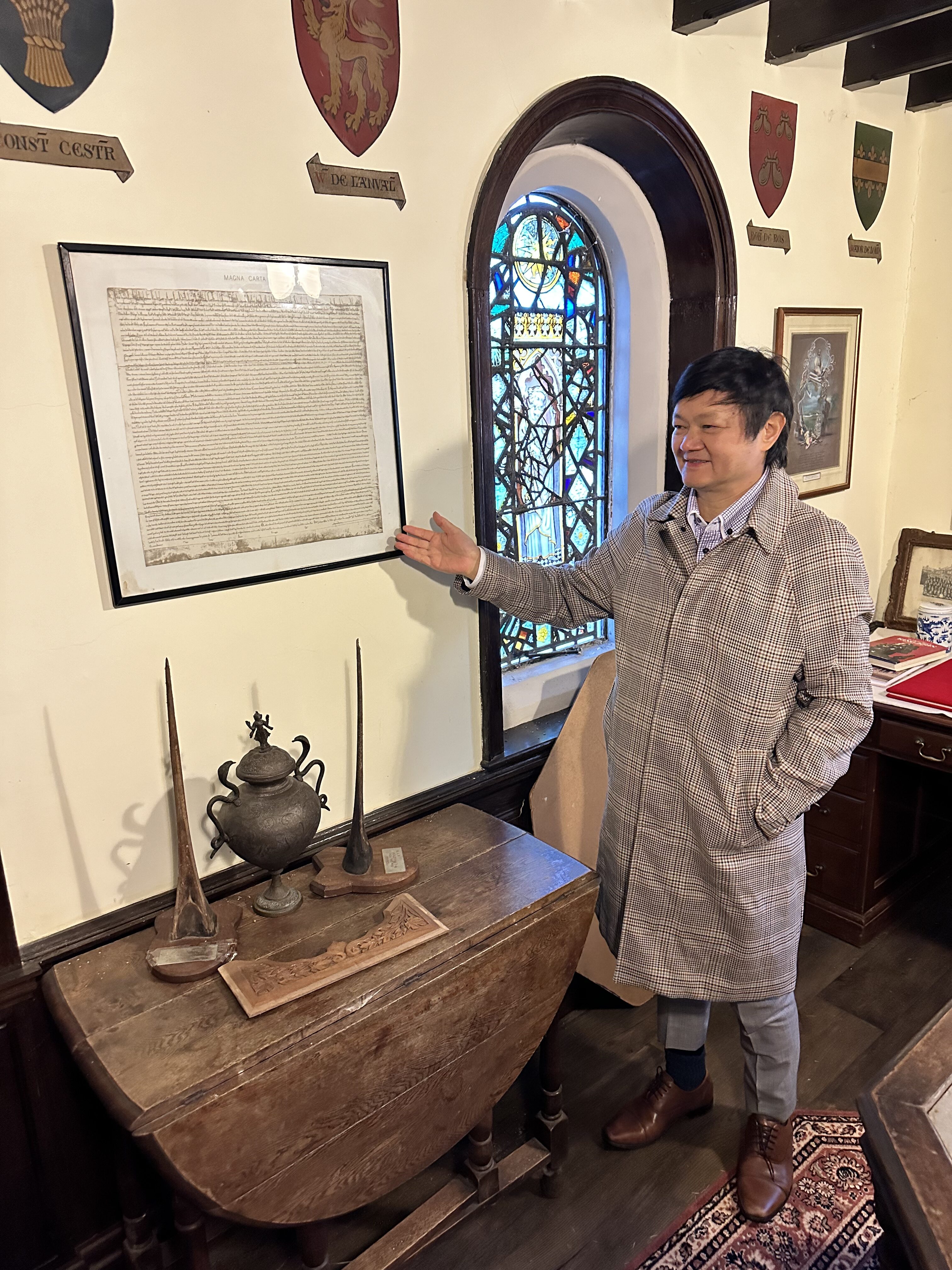 作者曾曉輝參觀簽署《大憲章》石板