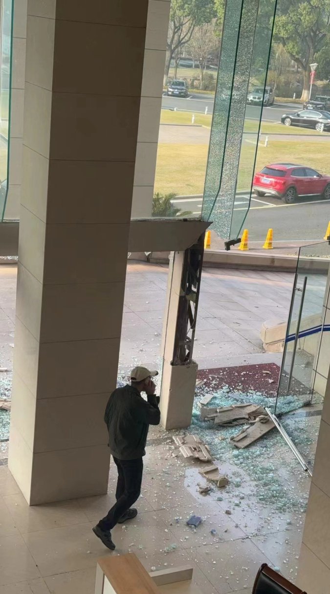 根據X平台「李老師不是你老師」發布,江蘇張家港市政府大樓7日上午發生爆炸事件。現場圖片顯示,爆炸後冒出大片白煙,周遭區域明顯可見,政府大樓入口的玻璃和門框嚴重損壞。另一張圖片顯示,爆炸現場有一個變形的瓦斯桶。