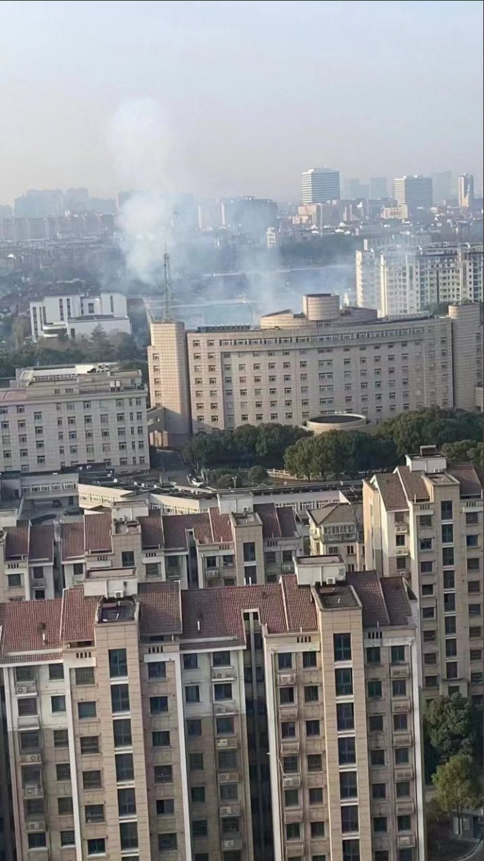 其後,位於南京市樓高19層的江蘇省公安廳大樓7日下午失火,接近頂層的數個樓層冒出陣陣濃煙,在南京市清晰可見。