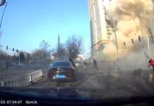 一棟四層建築爆炸後坍塌。現場畫面顯示,附近建築玻璃被震碎,路面多輛汽車受損,地上有很多爆炸後的碎片。爆炸建築對面的樓宇也有不同程度損毀,不時掉落玻璃等碎片。