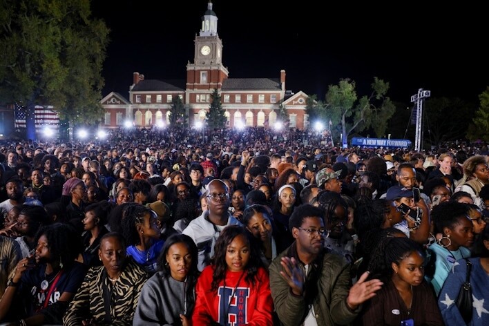 (中華新聞通訊社/中華時報11月6日綜合外電訊)美國總統大選美國時間5日投開票,共和黨候選人川普贏下多個搖擺州,晚間在佛州發表勝選談話,表示接下來將會是美國的「黃金年代」。川普陣營氣氛歡樂,支持者高舉雙手歡呼,許多人激動落淚;民主黨候選人賀錦麗陣營則氣氛低迷,賀錦麗競選團隊幹部表示,她今晚不會向支持者發表談話。