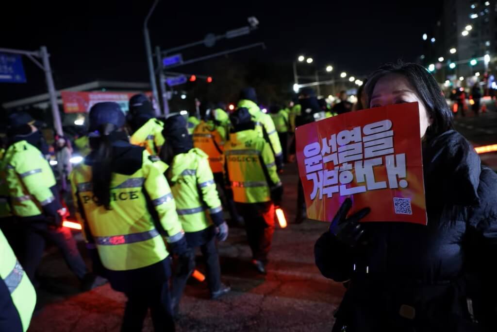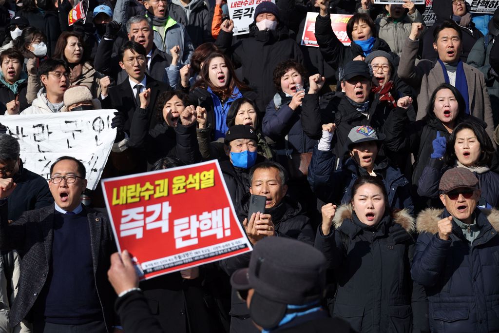國會外,數千名抗議群眾集結,部分要求逮捕尹錫悅,部分與軍警爆發小規模衝突。