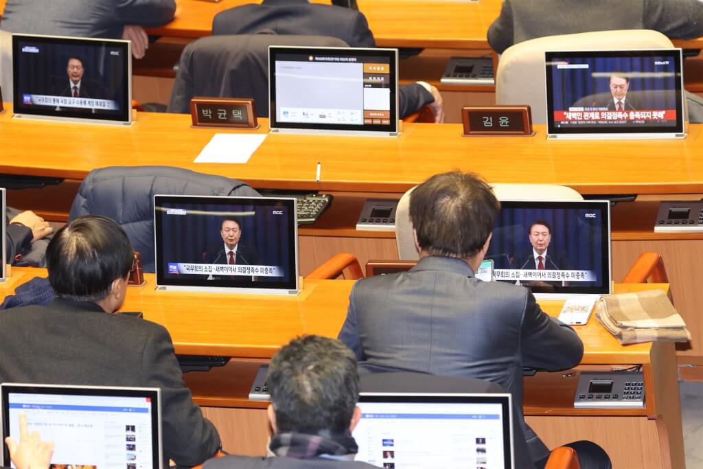 韓國總統尹錫悅3日晚間突襲宣布緊急戒嚴,但僅約6小時就因國會表決通過宣布解除,除在野黨大力批評,執政黨國民力量今早也召開會議,討論尹錫悅退黨等事宜。