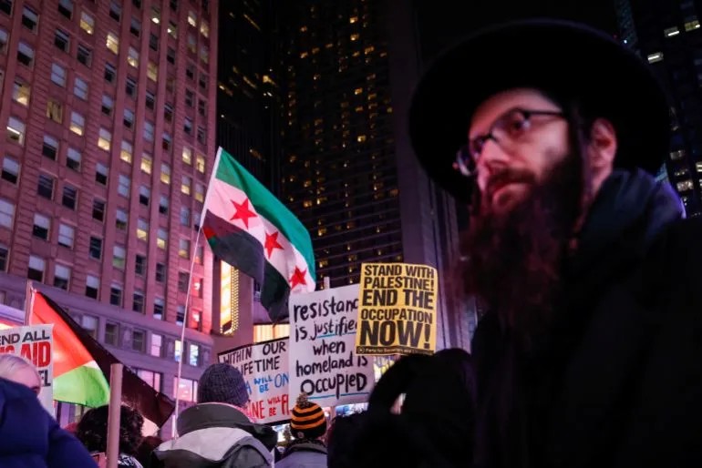 圖集:抗議者在停火公告發布後聚集在時代廣場