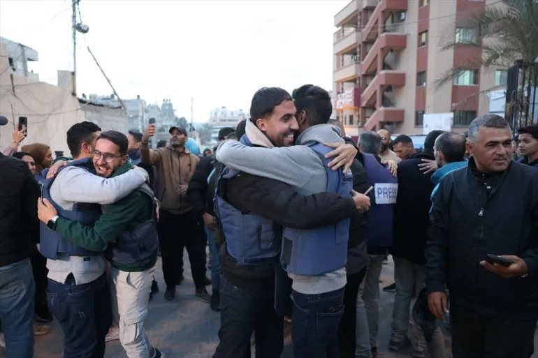 照片:隨著停火的臨近,加沙記者歡呼雀躍