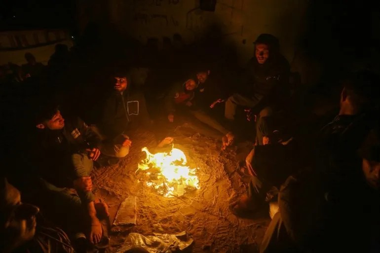 照片:巴勒斯坦人在街頭過夜,等待返回加沙北部的家園
