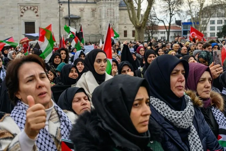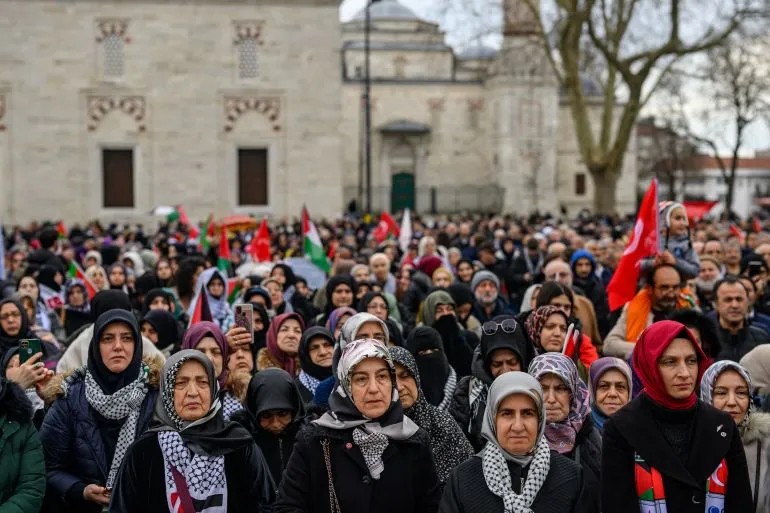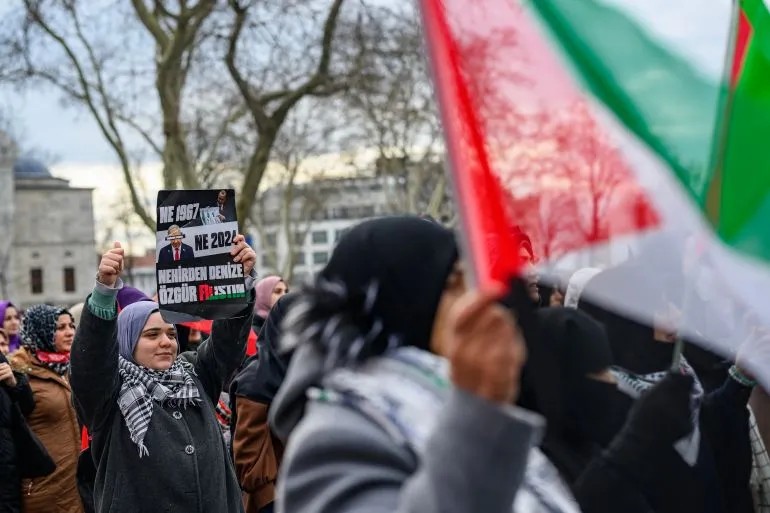 照片:抗議者集會反對川普的加薩伊斯坦堡的計劃