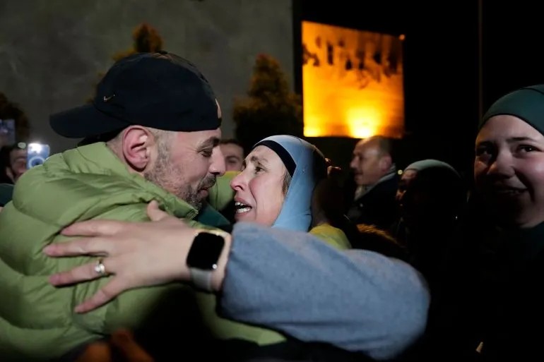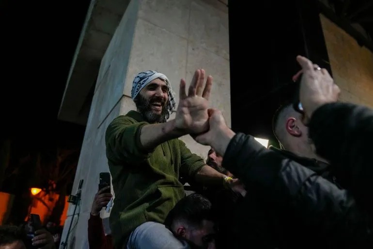 ♦同時,第一輛載有數十名從奧弗監獄獲釋的巴勒斯坦囚犯的巴士抵達被佔領的約旦河西岸的拉馬拉。