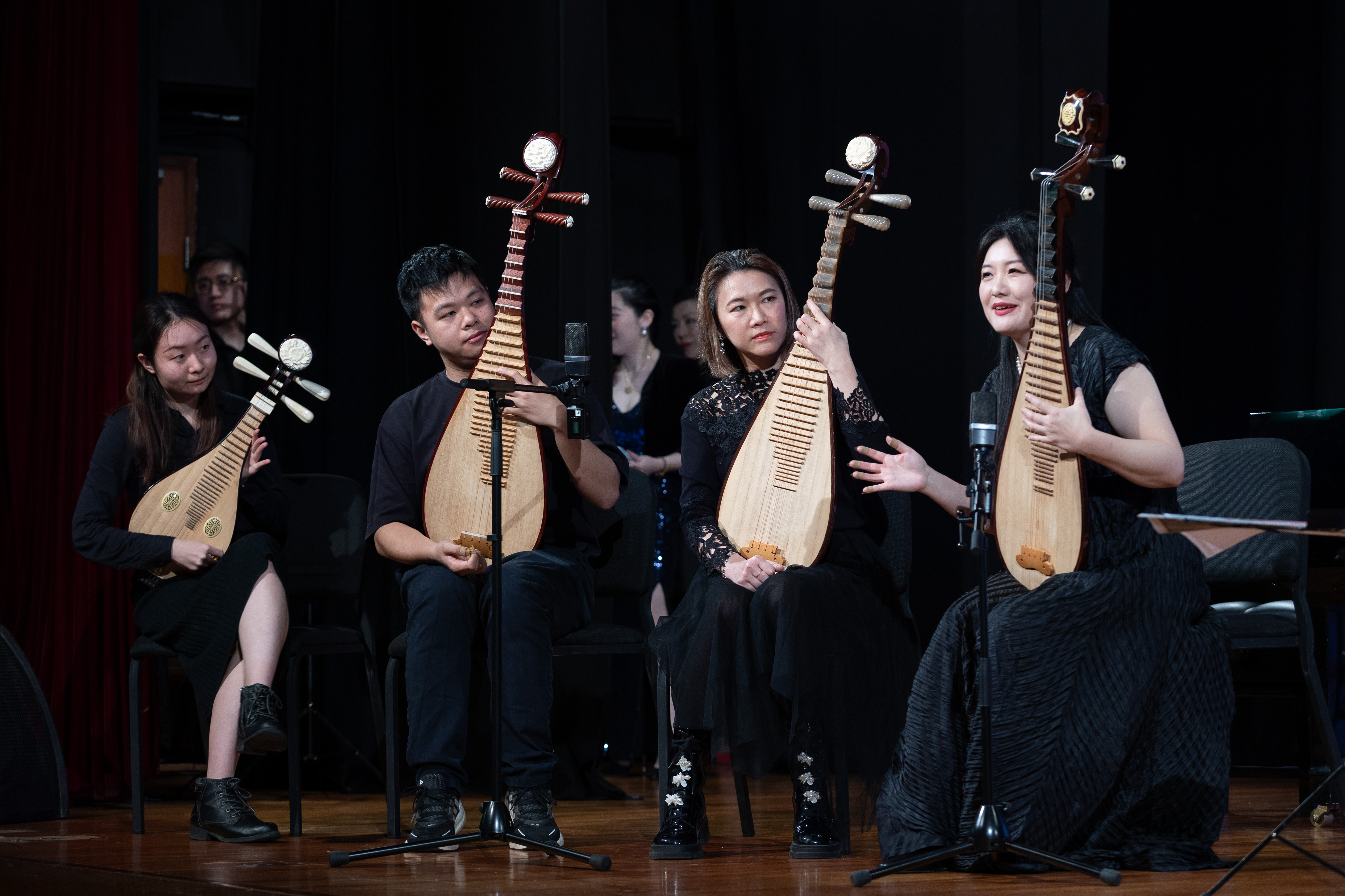 講座中,鄒博士演奏了多首曲目,包括與學生們共同演奏的《滄海一聲笑》和《鳳陽花鼓》,氣氛熱烈而融洽。特邀嘉賓們也展示了豐富多樣的演奏風格,從古箏到琵琶,無不展現出中國傳統音樂的獨特魅力。
