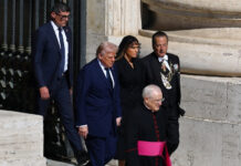 與妻子梅蘭妮亞(右2)26日出席教宗方濟各喪禮。(路透社)-218x150.jpg)