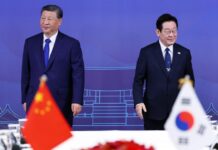 與南韓總統李在明(右)去年11月在韓國慶州出席APEC峰會期間舉行會晤。(韓聯社)-218x150.jpg)