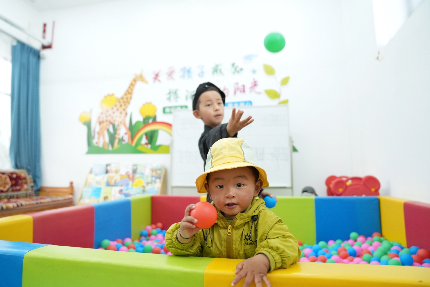 走進幸福驛站,室內明朗乾淨、環境溫馨,設有保健室、托幼室、娛樂室、餐廳、活動室等功能房。記者看到,在托幼室中,小朋友們拿著玩具嬉戲。斜對面的娛樂室內,10余位老人坐在藏式沙發上觀看電視節目,桌旁有酥油茶、甜茶。