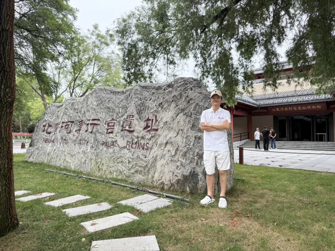 下午李夫人先接回病貓後,便駕車送我們至北戴河金山嘴。秦皇行宮遺址在七月封路安檢之後才得見真容,巍然橫臥山間,饕餮紋瓦當零落,菱格青磚沉默,長逾三十米的宮牆石礎雖沉默無言,卻似講述著昔日皇家威儀。遙想始皇東巡碣石,車馬喧騰,旌旗蔽日,何等煊赫!然而“萬里長城今猶在,不見當年秦始皇”,宮闕巍峨終被時光蝕為空寂的基石;昔日深宮高牆,終究被歲月剝蝕為遊人足下的殘跡。唯有遠處老虎石靜臥於海濤之間,如群虎蟄伏,見證了更悠久的傳說。