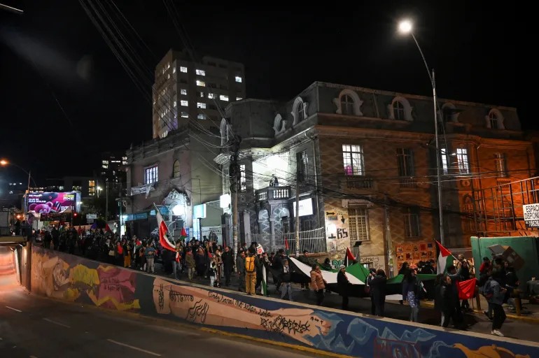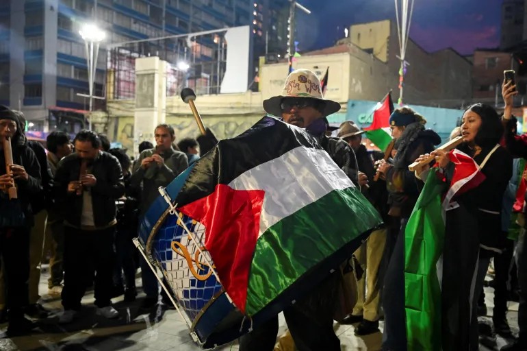 图片:在玻利维亚,巴勒斯坦支持者纪念加沙战争两周年