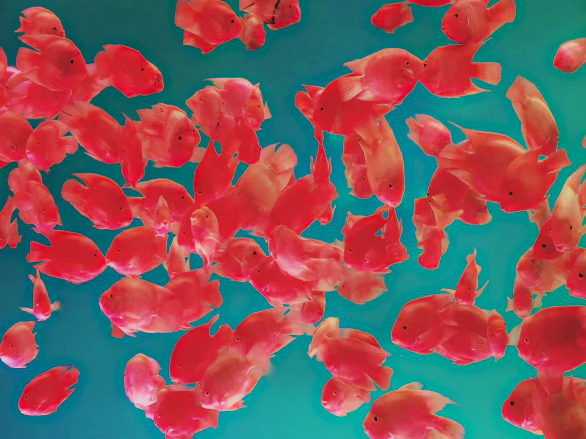 作品說明: 在福建省福州市的縣城,群山環繞中竟生存著來自深海的精靈,在福州永泰海洋世界海洋館裏,我對著雀躍與罐中海水的魚兒按下了快門,水清若空遊無所依,活靈活現如在綠色的森林中奔跑,在對照片後期的處理中,我突出了那一抹青色,將他與魚兒的“赤紅”形成鮮明對比,整幅作品猶如油畫般從我的想像中迸出在相片上,不同於普通的突出海洋的藍,這一抹青色,是我對海洋多樣性的理解
