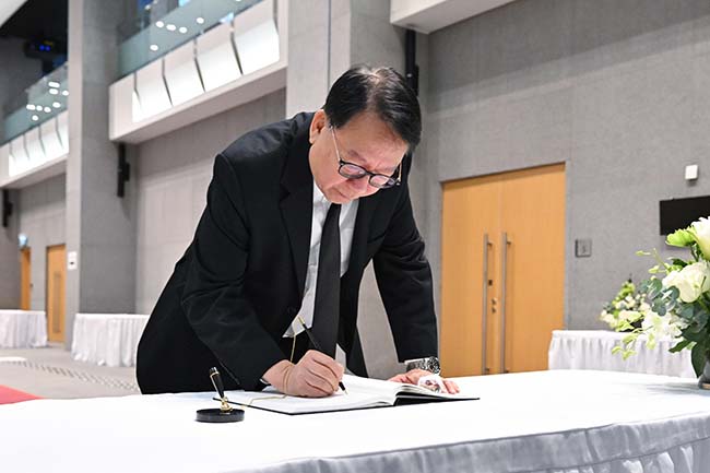 律政司司長林定國資深大律師今日(十一月二十九日)在政府總部簽署弔唁冊,向在大埔宏福苑火災不幸罹難的人士誌哀。