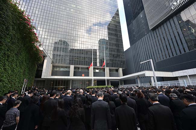 哀悼期間,全港所有政府建築物及設施(包括特區政府駐境外辦事處)的國旗及區旗會下半旗誌哀。其間,所有政府主辦的慶祝活動將會取消或延期,而政府官員會減少出席非必要的公開活動。